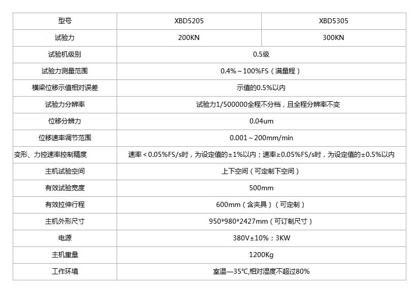 產(chǎn)品型號:XBD5205、XBD5305設(shè)備主要功能:本設(shè)備適用于對金屬材料、非金屬材料及復(fù)合材料的力學(xué)性能的測試以及工藝性能的分析研究。配上相應(yīng)的工裝,可做拉伸、壓縮、彎曲、剪切、撕裂、剝離、頂破、疲勞等試驗(yàn)??勺詣?dòng)求取試驗(yàn)承受力值、斷裂力值、伸長率、抗拉強(qiáng)度、屈服強(qiáng)度、抗壓強(qiáng)度、彈性模量、剪切強(qiáng)度、撕裂強(qiáng)度、剝離強(qiáng)度等參數(shù)。同時(shí)也可實(shí)現(xiàn)定伸長應(yīng)力、定應(yīng)力伸長、載荷保持等要求的測試。該機(jī)廣泛應(yīng)用于建筑建材、航空航天、機(jī)械制造、電線電纜、橡膠塑料、汽車制...">